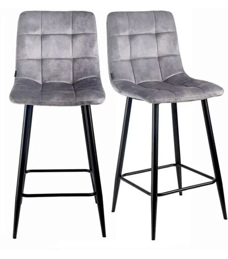 MEUBLETMOI Lot 2 tabourets de bar en velours gris clair pieds métal – NAMI 2