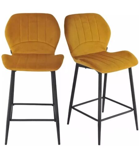 Meubletmoi - Lot 2 tabourets de bar en velours moutarde pieds métal noir - emilio 2