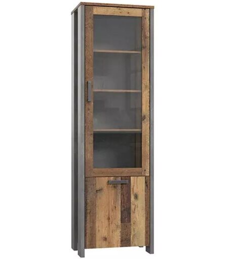 MEUBLETMOI Vitrine 2 portes et 6 niches effet bois vieilli et béton gris - BUCK