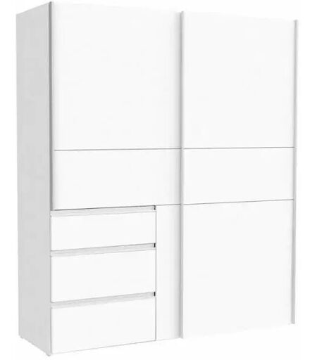 MEUBLETMOI Armoire 170 cm 2 portes coulissantes 3 tiroirs décor blanc - THOR