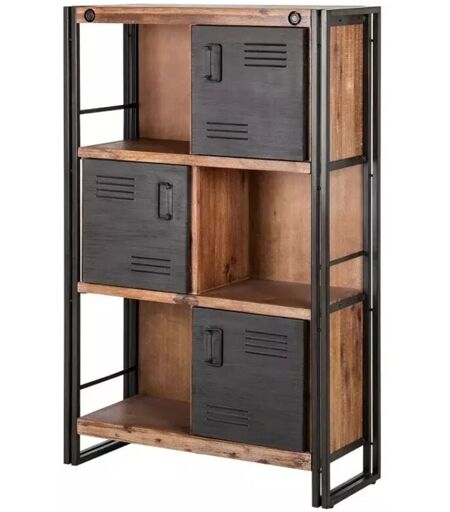 Meubletmoi - Bibliothèque 3 étagères 3 portes bois d'acacia et métal - workshop