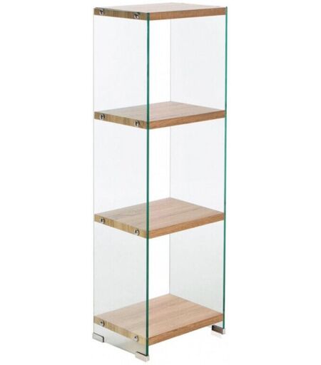 Meubletmoi - Bibliothèque h. 125 cm en verre trempé et 3 étagères décor chêne - ice