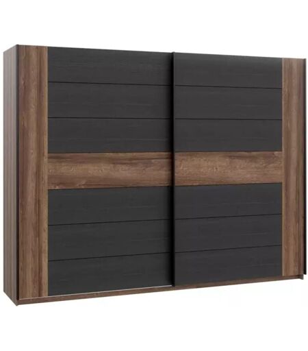 MEUBLETMOI Armoire avec 2 portes coulissantes décor chêne foncé et noir - riviera