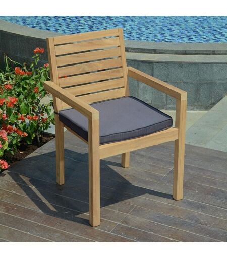 Coussin gris pour fauteuils fixes Ajoutez un coussin gris à votre fauteuil en teck Samoa, Tivoli ou Lombok pour plus de confort et pour apporter une touche de couleur à votre mobilier de jardin. Enveloppe déhoussable avec fermeture par zip Garnissage mousse polyuréthane 32 kg/m³ Epaisseur du coussin 5 cm Dimensions : L 48 x l 45 cm Avantage du polyester Le polyester est un tissu qui présente une grande résistance aux frottements, aux UV. Il n'est pas attaqué par les mites et les moisissures. Il est infroissable et infeutrable. Les fibres synthétiques offrant une plus grande résistance au vent et à l'eau que les matières naturelles, le polyester est un tissu intéressant pour la réalisation de coussins d'extérieurs. ...