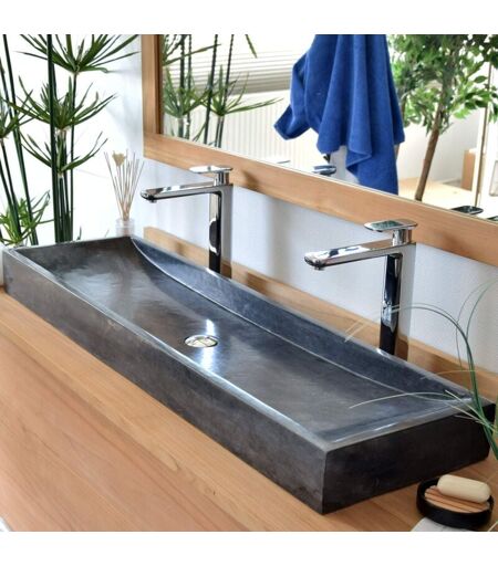 Vasque à poser en marbre noir Atlantica Forme épurée et taille XXL pour cette très belle vasque en marbre noir qui donnera beaucoup de style à votre salle de bain. A poser sur le meuble de salle de bain en teck suspendu Shark pour former un ensemble contemporain très tendance. Chaque vasque est unique. Le marbre est une pierre naturelle qui est reconnaissable par ses aspérités et ses nuances. Nos vasques sont faites de manière artisanale, il est donc possible d'avoir une légère différence au niveau de la couleur et du veinage de chaque vasque. Dimension : L 120 x l 35 x h 10 cm Livrée sans bonde et sans robinet. Percement garanti "normes Européennes" Pour le vidage, nous vous conseillons d'utiliser une bonde à écoulement libre. Installation de la vasque Atlantica Nous attirons votre attention sur le poids de la vasque Atlantica de 90 kg. Pour une installation sur un meuble suspendu, prévoir un système de fixation adapté à votre mur et pouvant supporter le poids de l'ensemble. Nous ...