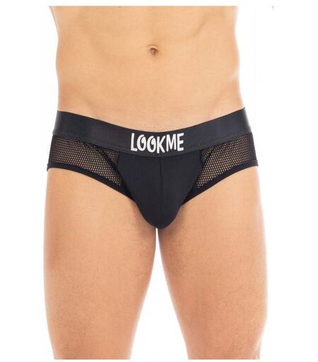 J'excite les sens. Je suis votre slip Gunslinger noir de la marque Look Me ! Oui, oui, je vous rassure, vous avez bien lu. Avec ma coupe slip qui met en valeur votre fessier ainsi que ma résille fine noire qui laisse transparaître votre peau, je décoche un coup en plein dans le coeur de votre partenaire ! Ma poche opaque à l'avant maintient tout de même un brin de mystère afin d'inciter votre moitié à faire preuve d'audace... Composition : 93% nylon, 7% élasthanne ...