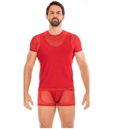 Montrez vos muscles et votre torse avec ce magnifique T-Shirt Midnight LM2103 Rouge de la marque Look Me. Sexy et très près du corps, ce t-shirt sera comme une seconde peau. Son mélange de matière entre opacité de la maille douce et transparence de la fine résille séduira en toute occasion votre partenaire. Souple et doux au toucher, ce t-shirt est confortable et très agréable à porter. Il sera votre arme de séduction massive pour rendre fou de désir votre moitié et jouer la carte de la séduction. Sa couleur rouge et son design original vous apportent originalité et sensualité. Le col rond orné de motifs et la forme débardeur dessinée par la matière opaque rendent cette lingerie unique ! Composition : 80% Polyamide, 20% Elasthanne Tailles S, M, L, XL. ...