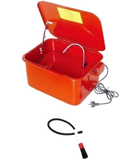 Description générale Cette fontaine de nettoyage est idéale pour les ateliers de réparation, de restauration automobile, ou de mécanique générale. Elle permet un nettoyage efficace de toutes vos pièces mécaniques, tout en garantissant un environnement sans odeur grâce à son couvercle. Spécifications techniques Volume intérieur du bac : 13,5 litres. Capacité du réservoir : 18,9 litres. Débit : environ 3 litres/minute. Dimensions intérieures : L 39,5 x P 29,5 x H 22 cm. Dimensions hors tout : L 47 x P 36 x H 25 cm. Poids : 7 kg. Certification CE. Garantie : 2 ans. Compatibilité et accessoires Accepte tous les produits de nettoyage à froid courants compatibles, SOLVANT À BASE D'EAU avec un pH compris entre 6 et 8. NE PAS UTILISER DE SOLVANT À BASE D'HYDROCARBURES. Livrée avec un pinceau brosse de lavage spéciale fontaine de nettoyage. Installation Livrée non montée. Facile à assembler avec des instructions claires. Utilisation Flexible de lavage inclus pour une utilisation pratique. ...