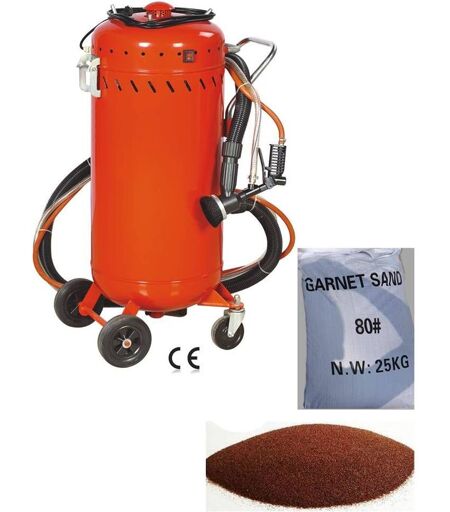 Equipement Express Sicoba - Combiné Sableuse Aérogommeuse Aspirateur mobile 106L + Sac 25kg d'Abrasif Garnet 80A+ Mesh