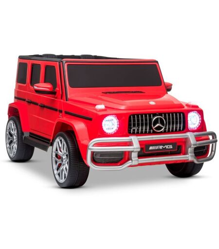 Ce 4x4 est la réplique officielle du modèle G63 AMG de la marque Mercedes. Doté de phares fonctionnels, d'un klaxon et d'un système audio, ces fonctionnalités permettent aux enfants de s'imaginer au volant d'un vrai véhicule. Nul doute que toutes vos promenades seront de véritables aventures ! Puissant, il dispose de 2 moteurs de 45 watts, ces derniers sont indépendants et entraînent chacun une roue arrière. Équipé d'une marche avant et une marche arrière, il atteint une vitesse allant jusqu'à 5 km/h. Les jeunes pilotes vont adorer conduire ce SUV électrique et ainsi découvrir de nouvelles sensations. Sécuritaire et spacieux, le Mercedes G63 AMG dispose de 2 vraies places assises, chacune équipée d'une ceinture de sécurité. Le véhicule est livré avec une télécommande parentale, permettant aux parents de diriger ce dernier à distance, ou tout simplement intervenir si votre enfant a besoin d'aide. Cette voiture électrique possède aussi un indicateur du niveau de batterie pour ne jamais tomber en panne. Il saura divertir vos enfants pendant des heures ! Avertissement : Utilisation uniquement sous la surveillance d'un adulte hors de la voie publique Caractéristiques techniques : Dimensions du véhicule: 143 x 82 x 64 cm (L. x l. x H. cm) Poids produit : 24 kg Matière : Plastique Moteur : 45W x2 Batterie : 12V / 7Ah Temps De Charge : 8 - 12H Autonomie : 1 - 2H Vitesse Moyenne : 3 - 5 Km/H Poids Maximum Recommandé : 59 kg Pour les enfants à partir de 3 ans Licence Officielle Mercedes Équipements : Système audio : FM, MP3 - connexions USB, Bluetooth, câble jack Contrôle Du Volume Marche Arrière Amortisseurs Phares Fonctionnels Ceinture De Sécurité Indicateur Niveau De Batterie Klaxon Nombre De Sièges : 2 Télécommande Parentale 2,4GHz : Portée 7m (Piles Non Fournies) ...