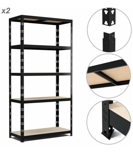 EUROSPEN Lot de 2 Etagères de Rangement modulables et polyvalentes pour atelier, garage, cave...Charges Lourdes 180x90x40cm x2 - Noir