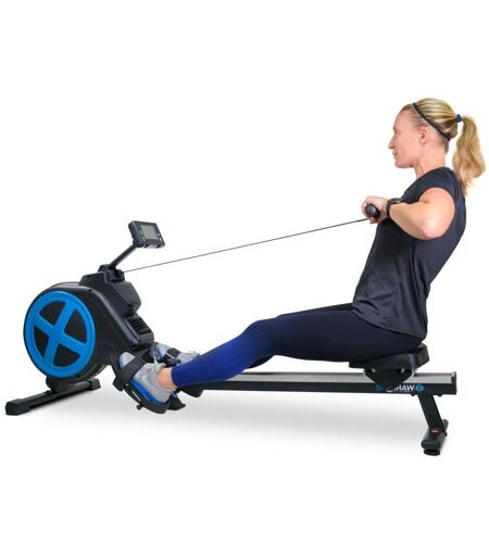 Le ROWER ULTRA de la marque SPARRAW FITNESS est un rameur pliable doté d'un système de résistance manuelle magnétique sur 8 niveaux et d'une roue d'inertie de 2 Kg spécialement conçu pour pratiquer du sport à domicile. "Avec jusqu'à 680 calories brûlées en une heure d'exercice, le rameur d'appartement est l'appareil de musculation idéal pour favoriser la perte de poids." Ce rameur dispose de 5 fonctions principales s'affichant sur l'écran LCD ( fonctionne avec des piles AAA non fournies): le temps écoulé, le tour par minute, la distance parcourue, le nombre de calories dépensées et de coup de rame. Totalement ergonomique, le rameur ROWER ULTRA dispose d'un siège coulissant fluide, d'un manche antidérapant et de pédales sanglées et antidérapantes pour un maintien optimal lors de son utilisation. Sa structure compacte et pliable permettent de le ranger aisément et ses roulettes frontales de le déplacer d'une pièce à une autre très facilement. Idéal pour un objectif de remise en forme, perte de poids ou encore de préparation physique. Pratiquer le rameur d'appartement permet d'améliorer l'endurance cardiovasculaire mais aussi le renforcement musculaire au niveau des jambes, du dos, des abdos et des bras. Le rameur offre des effets similaires à ceux de la natation. Il sollicite 90% des muscles du corps, soit beaucoup plus qu'un sport comme le vélo ou le footing. De plus le rameur d'appartement à l'avantage d'être un sport sans risque pour vos articulations. Livré prémonté à 70%. En 20 minutes votre nouvel appareil de musculation sera sur pied et vous aussi ! Très complet c'est l'appareil fitness idéal pour pratiquer du sport à la maison tout au long de l'année. CARACTÉRISTIQUES TECHNIQUES : Poids max utilisateur : 120 kg Poids max pour une utilisation optimale : 100 kg Roue d'inertie de 2 Kg Dimensions du rameur : 164 x 60 x 80 cm Dimension du rameur plié : 110 x 60 x 113 cm Poids du Rameur : 23 Kg Matière : Acier CONSEILS D'UTILISATION : Placez l'appareil sur une surface plane. Pour une installation optimale, il est recommandé de placer un tapis de sol sous l'appareil. ...
