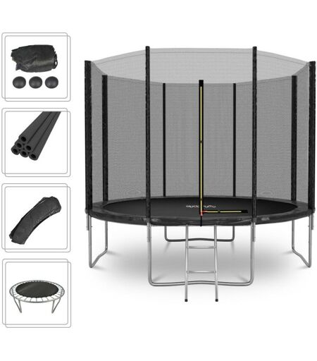 Jump4fun - Trampoline de Jardin Deluxe ø305cm Noir - avec Filet de sécurité, Tapis de saut, Coussin de protection, Echelle