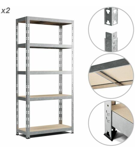 Lot de 2 étagères de rangement polyvalentes en métal pour le stockage de charges lourdes ou volumineuses. L'étagère est facile et rapide à monter, sans vis et sans outils via un système d'accroche papillon, elle offre une grande résistance et une grande stabilité. Solide, une barre centrale de renfort se trouve sous chaque plateau et l'étagère est équipée de pieds en plastiques pour protéger le sol des rayures. Pratique, ce modèle est idéal pour ranger et organiser toutes vos pièces en plus : garage, atelier, cave, dressing... Chaque niveaux supportent jusqu'à 100 kilos !! soit 500 kilos de charge totale. Les charges indiquées s'entendent uniformément répartie. Ultra modulable, la hauteur des plateaux est ajustable et l'étagère peut se transformer en 2 étagères distinctes pour s'adapter à vos espaces. Pour une sécurité optimale des trous sont présents sur la structure afin de pouvoir la fixer au mur si besoin. 2 sets de vis et chevilles pour fixation murale sont fournis, cependant ...
