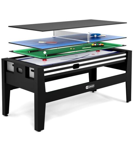 SOKKER Table multi jeux 4 en 1 GLADIATEUR Air Hockey, Billard, Ping Pong, Plateau - avec Accessoires