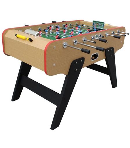 Baby-foot de bar - Modèle Deluxe - Version Aréna Envie d'une petite partie de foot en intérieur ? Mais pas de place ? On a la solution ! Le fameux football de table. Opposant généralement deux équipes de deux joueurs, la table est constitué d'un plateau représentant le terrain, sur lequel se déplacent huit barres qui supportent les onzes figurines de chaque équipe. A vos marques, près, feu, GO !! Le comptage des points se fait grâce aux 10 dés en plastique jaune présents de chaque côté de la table. Le baby-foot de bar est un des modèles les plus vendus en Europe. Il est le bestseller, de part son design unique, sa solidité et son aspect robuste. Cette table mesure 1m48 de long, 75cm de large et la hauteur avec le plateau est de 94 cm. Elle dispose d'un cadre en MDF (plus dense que l'aggloméré, il est souvent le remplaçant idéal du bois massif puisqu'il se déforme peu et se façonne facilement. Il ne se fend pas, résiste au feu, et n'éclate pas. Il se compose de fibres de bois comprimées et collées à chaud) recouvert de PVC laminé. Afin de pouvoir profiter pleinement de votre nouveau baby-foot, nous avons fourni tout l'équipement nécessaire : balles de foot en bois de 3.5 cm de diamètre joueurs en matière ABS Notre baby-foot est un produit qui se monte facilement grâce à sa notice de montage. Si toutes fois vous avez des questions supplémentaires, n'hésitez pas à contacter notre service client. Caractéristiques de votre table de jeux : Matière des bandes : caoutchouc de qualité Composition de la table : cadre en MDF + PVC laminé Dimension de la table : 148 x 75 x 94 cm Surface de jeu : 117 x 69 cm Diamètre des barres : 15,8 mm Barres traversantes en Acier Distance des pieds des joueurs/tapis : 1,5 cm Poids : 65 kg ...