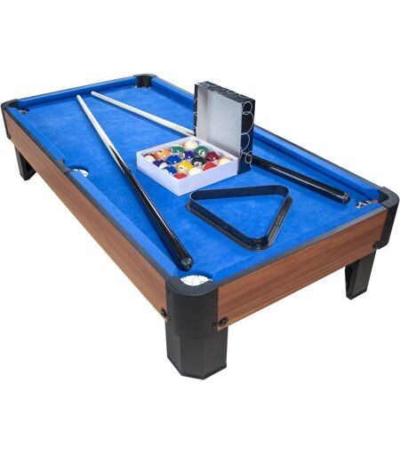 Billard de table avec accessoires - Kit Billard Compact de bureau ou salle de jeu, 102 x 51 x 22,5 cm - Marron et Tapis Bleu