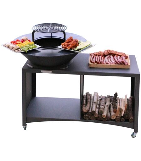 Monmobilierdesign - island Brasero îlot avec plaque et grille amovible en acier barbecue plancha extérieur ø 75 cm
