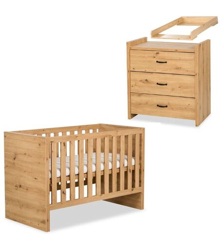 Monmobilierdesign - amelia Ensemble bébé commode à langer et lit évolutif 120X60 Chêne