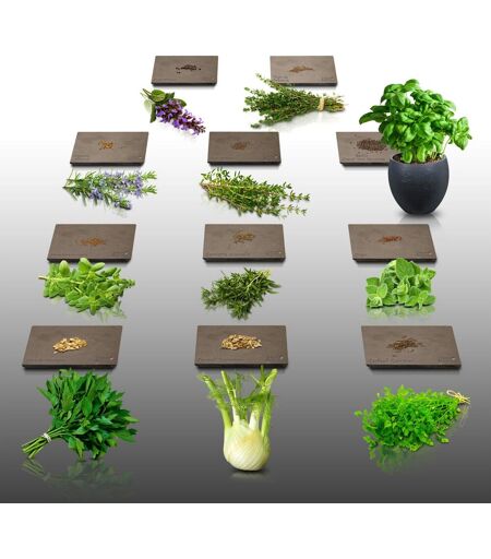 Lot familial pour découvrir différentes variétés aromatique. Composition du lot: basilc, romarin, sariette, marjolaine, thym serpolet, thym de Provence, sauge, origan, fenouil, cerfeuil et ache de montagne. ...