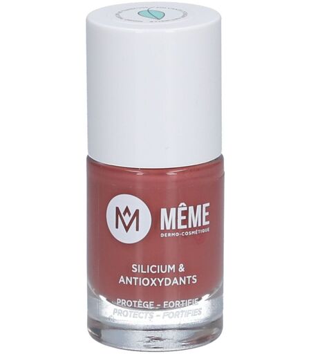 Les compléments alimentaires ne peuvent se substituer à une alimentation équilibrée et variée et à un mode de vie sain.MÊME Vernis Silicium & Antioxydants a été spécialement développé pour renforcer les ongles fragiles et abîmés et les protéger des agressions quotidiennes, telles que le stress oxydatif. La formule est enrichie en silicium, qui renforce la structure de l'ongle, et en antioxydants qui aident à protéger les ongles. La couleur corail vibrante donne aux ongles un aspect radieux, tandis que la formule offre un double effet : soin et esthétique.Indication:Recommandé pour les personnes ayant des ongles fragiles, abîmés ou sensibles, par exemple après des traitements médicaux tels que la chimiothérapie.Application:Appliquez une couche de base protectrice sur des ongles propres et secs.Puis appliquez deux couches du Vernis MÊME Silicium & ; Antioxydants, laissez bien sécher chaque couche.Pour un éclat durable et une protection supplémentaire, terminez par une couche de finition.Ingrédients :Acétate de butyle, acétate d'éthyle, nitrocellulose, copolymère d'acide adipique/de glycol de néopentyle/d'anhydride trimellitique, citrate d'acétyle tributaire, alcool, bentonite de stéaralkonium, diméthyl oxobenzo dioxasilane, sulfone de diméthyle, extrait de Crithmum Maritimum, Polygonum Fagopyrum Seed Extract, Tocopheryl Acetate, Caprylic/Capric Triglyceride, N-Butyl Alcohol, Isopropyl Alcohol, Phosphoric Acid, Sorbic Acid, Iron Oxides (Ci 77491), Red 6 Lake (Ci 15850), Titanium Dioxide (Ci 77891), Iron Oxides (Ci 77499), Yellow 5 Lake (Ci 19140). ...