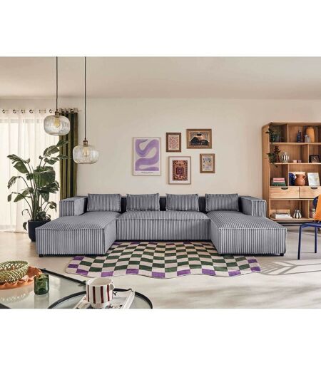 Lisa Design - Stella - canapé panoramique en u - 7 places - en velours côtelé grosses côtes - gris