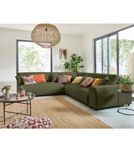Lisa Design - Garance - canapé modulable d'angle gauche - 6 places - en velours côtelé - vert