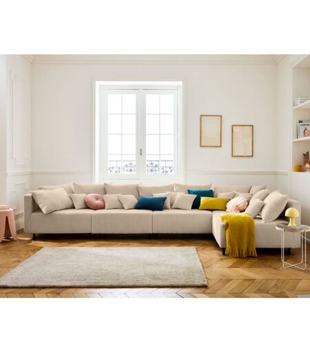 Lisa Design - Edinburg - canapé modulable d'angle réversible 5 places - en velours côtelé - beige