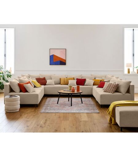 Lisa Design - Edinburg - canapé modulable panoramique 8 places - en velours côtelé - beige