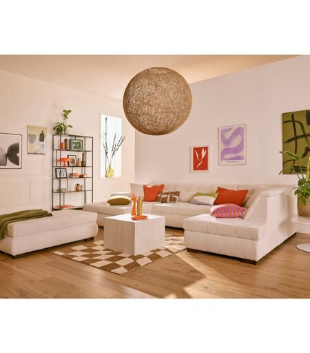 Livraison sur RDV devant chez vous ou en bas de votre immeuble. Deux à trois jours après l'expédition, vous recevez un SMS pour vous permettre de planifier la livraison au jour qui vous convient, du lundi au vendredi de 8h à 17h30. Caractéristiques techniques : Origine : Europe Garantie : 2 ans Type de canapé : Canapé panoramique Type d'angle : Panoramique U Nombre de places : 7 Coussins déhoussables : Oui Matière de la structure : Bois aggloméré et panneaux de particules Matière du canapé : Velours côtelé Détail des matières : Assise : Mousse polyuréthane 28kg/m3 - Dossier : Mousse polyuréthane 21kg/m3 – Ressorts ondulés – Structure : Bois aggloméré et panneaux de particules - Revêtement en velours côtelé - Pieds en plastique effet bois foncé Garnissage de l'assise : Mousse polyuréthane Densité de l'assise en kg/m3 : 28 Garnissage du dossier : Mousse polyuréthane Densité du dossier en kg/m3 : 21 Suspensions d'assise : Ressorts ondulés Pieds : Plastique Poids : 125 Style : ...
