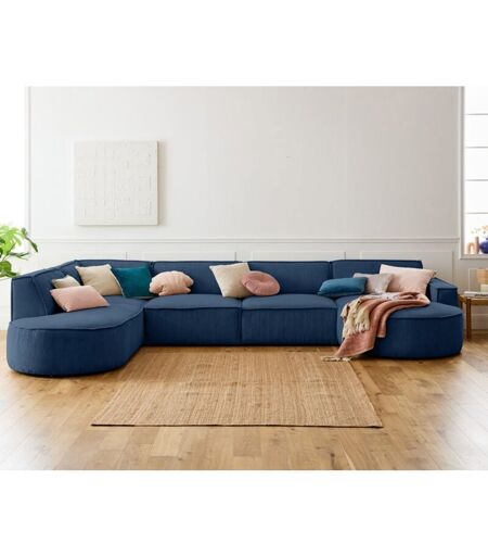 Lisa Design - Spiaggia - canapé panoramique d'angle gauche - 7 places - en velours côtelé - bleu