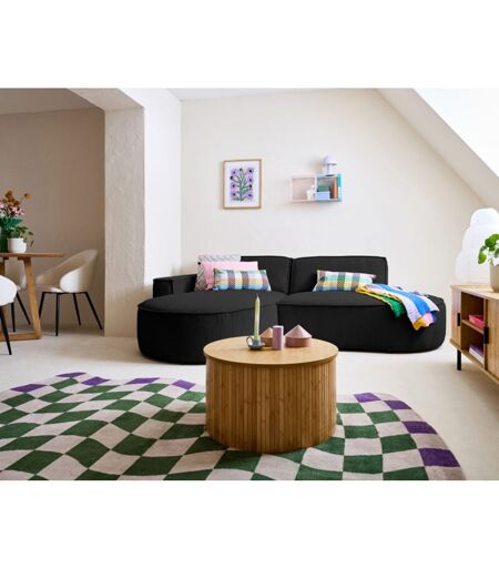 Lisa Design - Spiaggia - canapé d'angle gauche - forme arrondie - 4 places - en velours côtelé - noir
