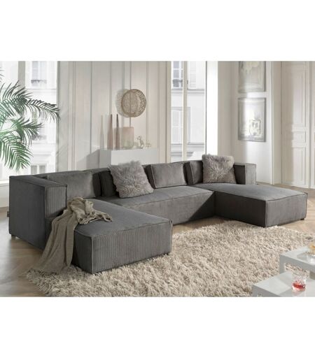 Lisa Design - Stella - canapé panoramique en u - 7 places - en velours côtelé - gris foncé