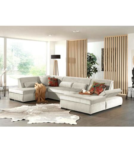 Lisa Design - Vermont - canapé panoramique d'angle gauche - 7 places - xxl - en velours - beige