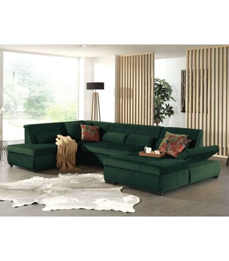 Lisa Design - Vermont - canapé panoramique d'angle gauche - 7 places - xxl - en velours - vert
