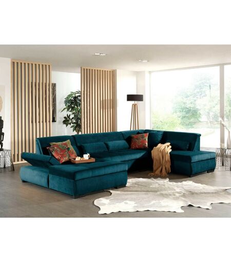 Lisa Design - Vermont - canapé panoramique d'angle droit - 7 places - xxl - en velours - bleu canard