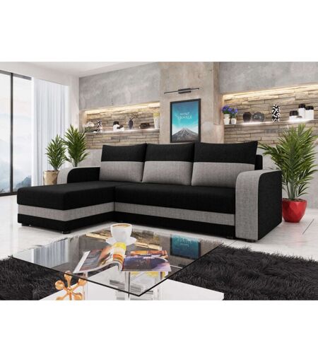 Bestmobilier - Harvey - canapé d'angle réversible - convertible - avec coffre - en tissu - 4 places - style contemporain - noir / gris