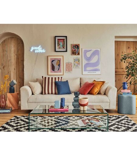 Description générale Le canapé 3 places Rune allie confort, durabilité et un design moderne. Avec son assise capitonnée et ses pieds inclinés en bois wengé, il s'intègre parfaitement dans un intérieur contemporain. Son revêtement en velours côtelé apporte une touche de douceur et de chaleur à votre espace de vie. Disponible en plusieurs coloris, le canapé Rune est idéal pour créer une atmosphère cocooning. Spécifications techniques Nombre de places : 3 Fabrication : Europe Convertible : Non Coffre de rangement : Non Structure en bois massif certifié FSC et panneaux de particules Assise : Mousse polyuréthane de densité 25Kg/m3 Dossier : Mousse polyuréthane de densité 18Kg/m3 Suspensions : Ressorts ondulés Revêtement en velours côtelé 100% polyester Pieds en bois wengé Poids maximum supporté : 375 kg A assembler : en quelques dizaines de minutes, notice fournie Compatibilité et accessoires Complétez votre décoration avec d'autres éléments de la collection Rune, tels que le canapé 2 ...