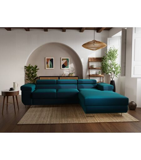 Bestmobilier - Pablo - canapé d'angle droit - 6 places - convertible avec coffre et têtières réglables - en velours
