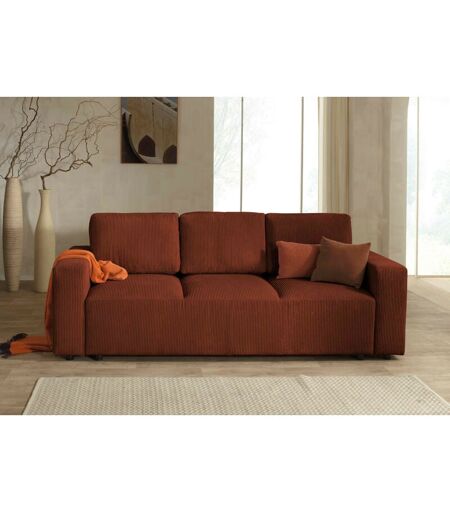 Lisa Design - Livy - canapé droit convertible - avec coffre - en velours côtelé - 3 places