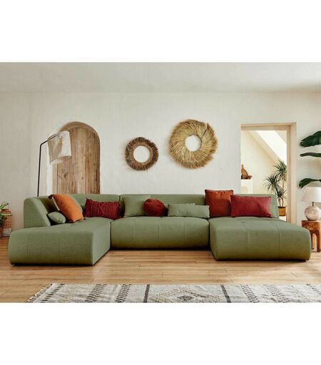 Lisa Design - Onyx - canapé panoramique d'angle gauche 7 places - en tissu - vert sauge