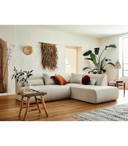 Lisa Design - Onyx - canapé modulable d'angle droit 5 places - en tissu - beige