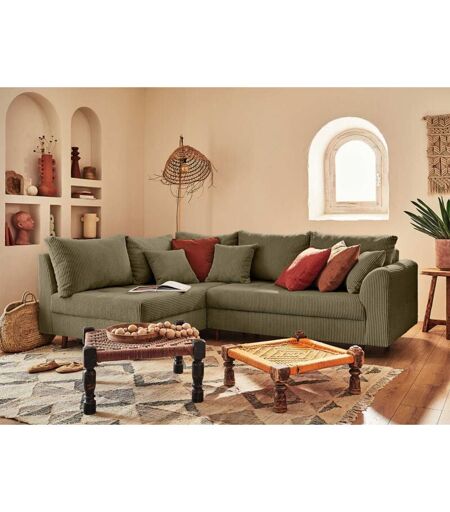 Lisa Design - Rune - canapé d'angle gauche - 4 places - en velours côtelé - vert