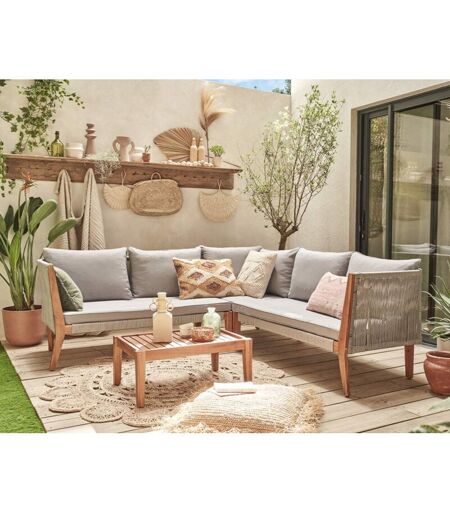 Bestmobilier - Papua - salon bas de jardin 5 places - bois, corde et coussins gris