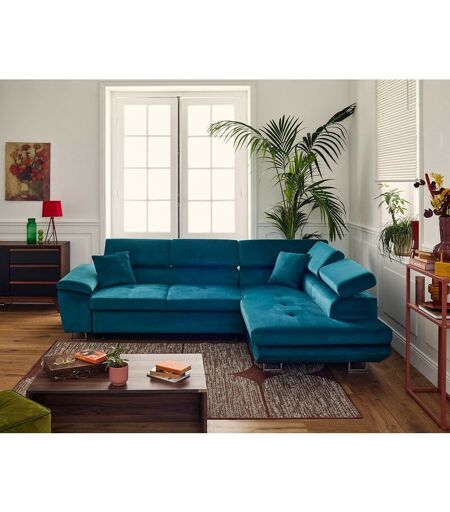 Bestmobilier - Dimas - canapé d'angle droit 5 places - convertible avec coffre et têtières réglables - en velours