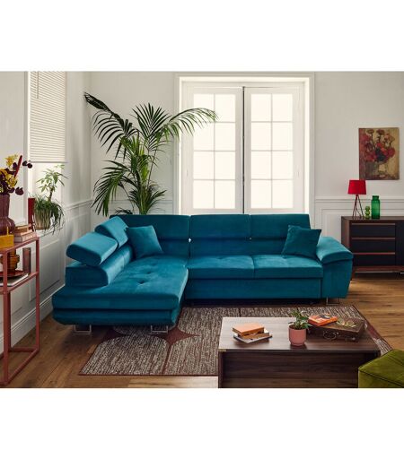 Bestmobilier - Dimas - canapé d'angle gauche 5 places - convertible avec coffre et têtières réglables - en velours