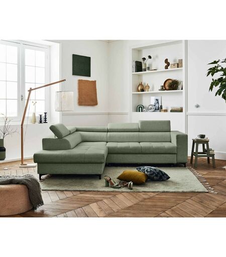 LISA DESIGN Olinda - canapé d'angle gauche - 5 places - convertible avec coffre et têtières réglables - en tissu