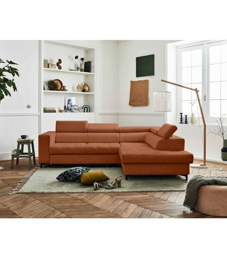 Lisa Design - Olinda - canapé d'angle droit - 5 places - convertible avec coffre et têtières réglables - en tissu - terracotta