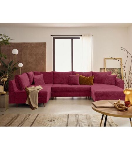 Lisa Design - Rune - canapé panoramique d'angle gauche 7 places en velours texturé - prune