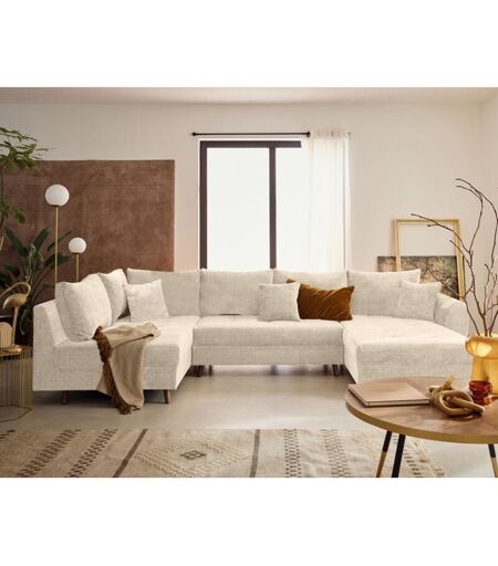 Lisa Design - Rune - canapé panoramique d'angle gauche 7 places en velours texturé - beige